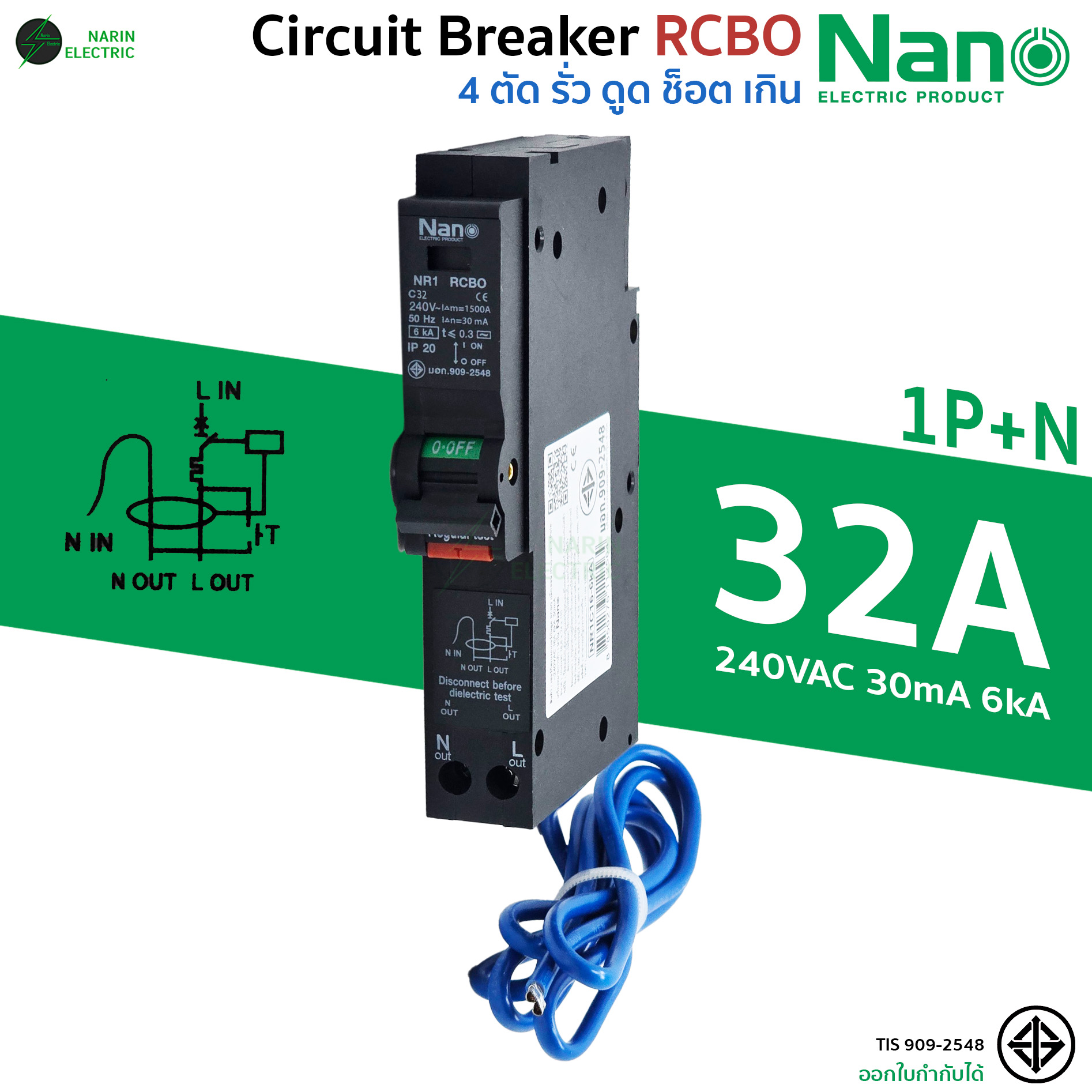 1. เซอร์กิตเบรกเกอร์กันดูดชนิด 1 Pole ขนาด 32A มีพิกัดทนกระแสลัดวงจร (IC) 6kA สำหรับแรงดันไฟฟ้ากระแสสลับ (AC) 240 Volt.