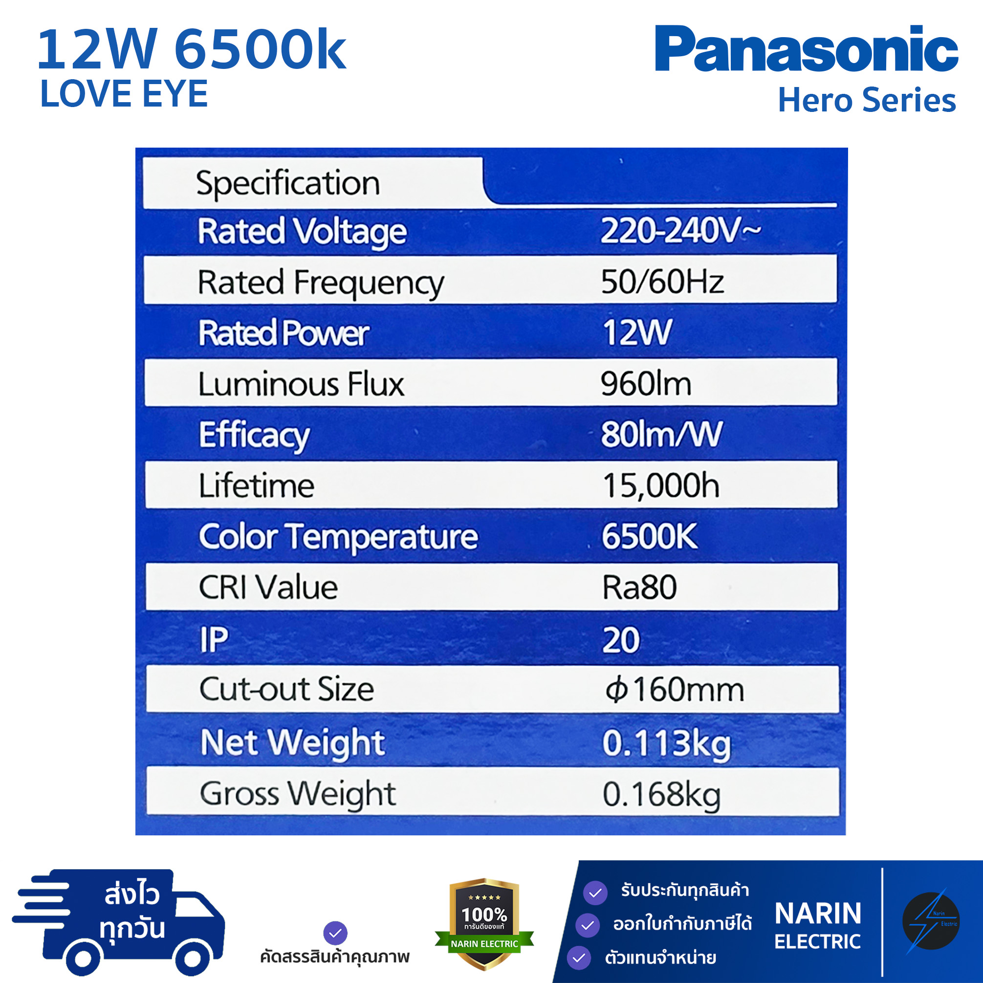 – โทนแสง : Daylight 6500K