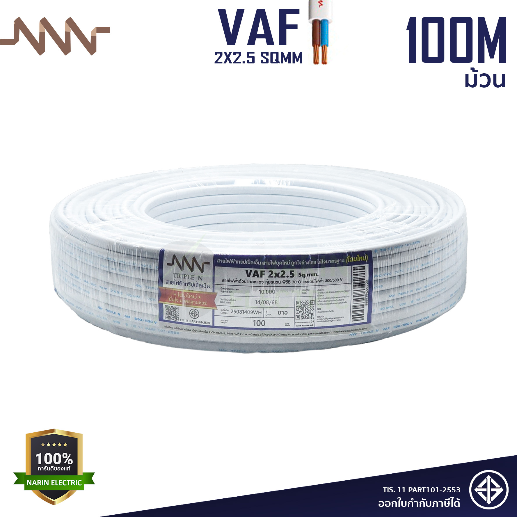 สายไฟ VAF 2×2.5 100m NNN (Triple N) สายแข็งคู่สีขาวเหมาะใช้เป็นสายปลั๊กไฟ